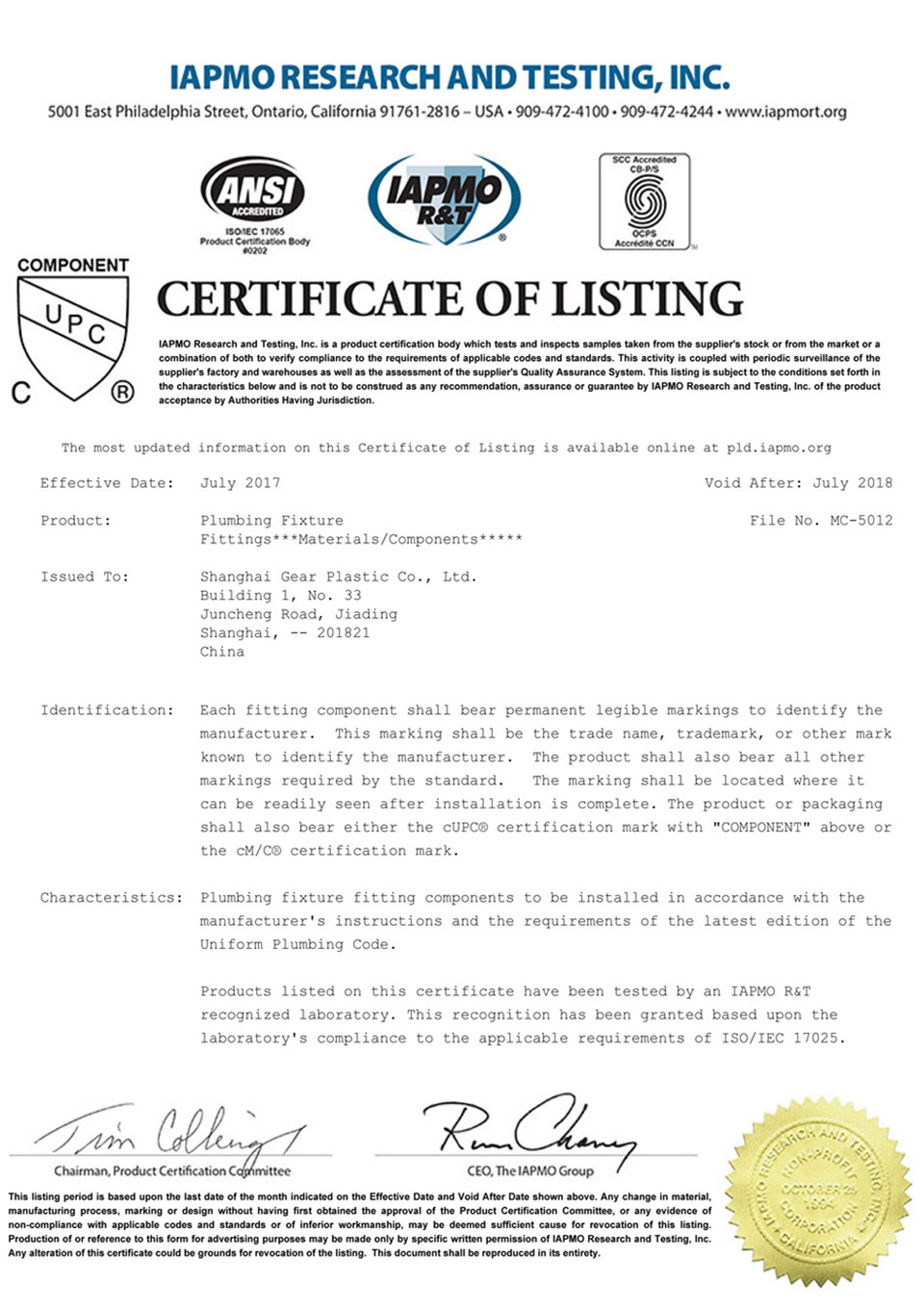 Our products have passed: US NSF, UPC, European EN817, EN200, EU CE, ROHS, PAHS, Germany W270, DVGW/KTW, UK WRAS, France ACS, NF, Australia Water Mark, China GB18145 and other international testing certification.